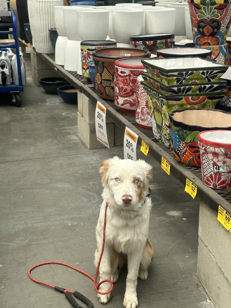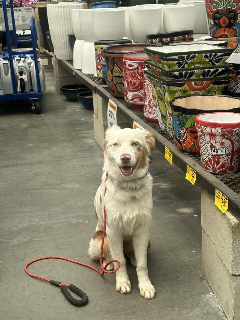 We took our training to Lowe’s to expose her to a new environment with more distractions. She was really excited to see other people but quickly acclimated to her surroundings. Keep up the great work girl!!