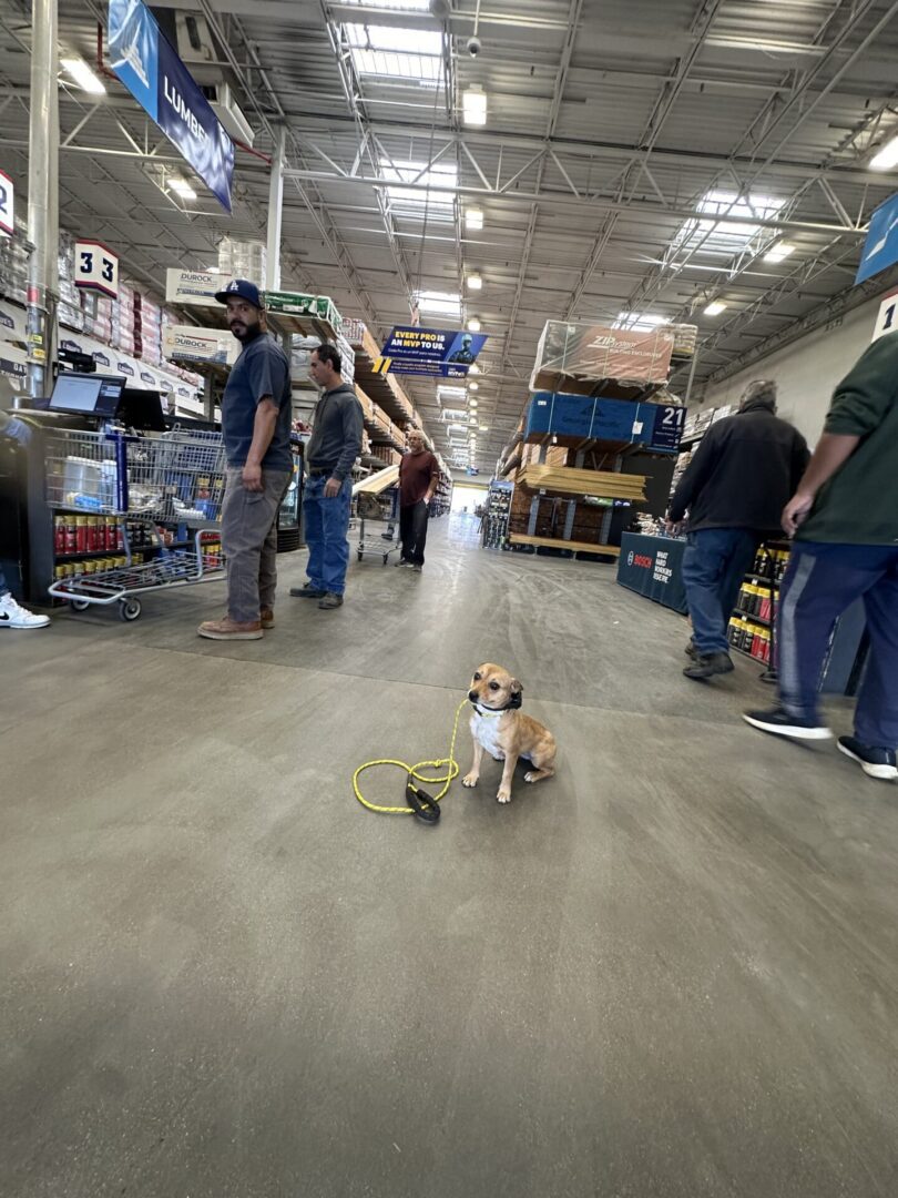 Today, we trained at Lowe’s to further expose Bella to human distractions and help her build confidence in busier environments. Although she’s generally comfortable around people, Bella can be a bit skittish with sudden, loud noises like forklifts or the rattling sounds in the lumber area. Aside from these noisy distractions, she does very well around other humans, showing steady progress in adapting to the activity around her.
