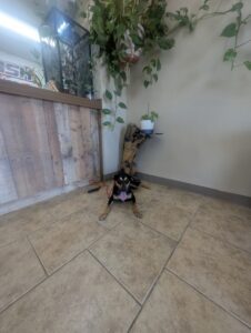 Meet **Bliss**, a Beagle-Doberman Pinscher mix beginning her **three-week board and train rehabilitation program**. She’s an incredibly flighty girl with **severe separation anxiety**, making confidence-building and structured training essential for her progress.