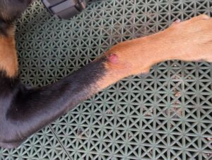 Not sure if Bliss scratched her leg while running around with the other dogs or if it might be a hot spot. I noticed it yesterday—I’ll apply some ointment and keep an eye on it