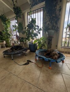 TRAINING HIGHLIGHTS: *”Today’s training with Bliss and Cy focused on socialization and energy decompression. Both dogs worked on ‘place’ to reinforce calmness and relaxation, creating a structured space for balanced interaction and confidence-building.”*