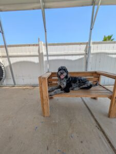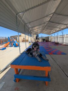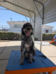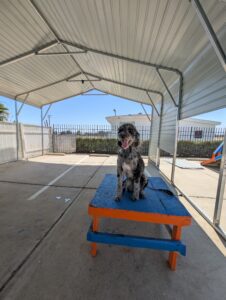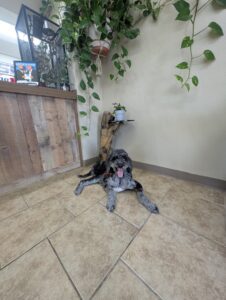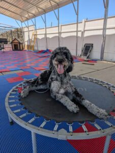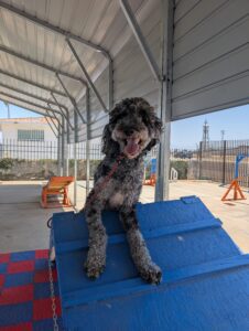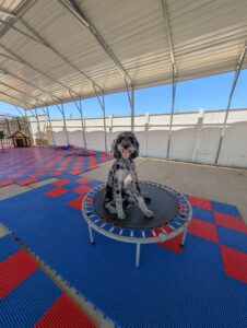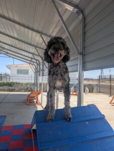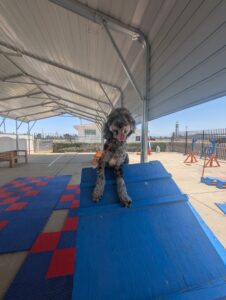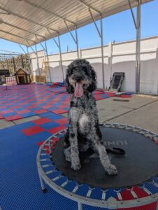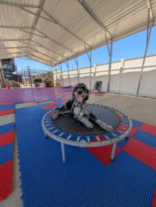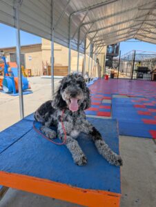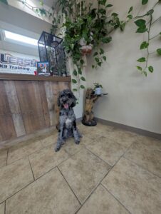 Let’s give a warm welcome to Cas, who just joined our 2-week Board & Train program! Cas is here to work on her manners around the house, improve her leash skills, and most importantly—kick the habit of stealing the kids’ socks! Her family’s goal is to enjoy outings with her without the pulling, jumping, or chaos on the leash. We’re excited to help Cas become the well-mannered companion she’s meant to be!