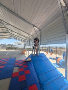 TRAINING HIGHLIGHTS: After a productive training day, Cas got to unleash her energy in the agility course! So much fun watching her run, jump, and play! Great way to wrap up the day!”
