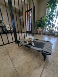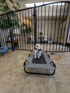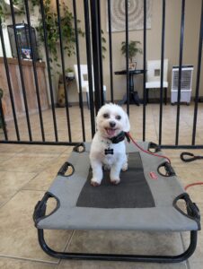 Cash is a 4-year-old Maltese who has just joined our 3-week rehabilitation program. He’s been displaying concerning behaviors including biting, excessive barking, aggression toward people, and difficulty following commands. He also struggles with being around other dogs and is not dog-friendly at this time.
