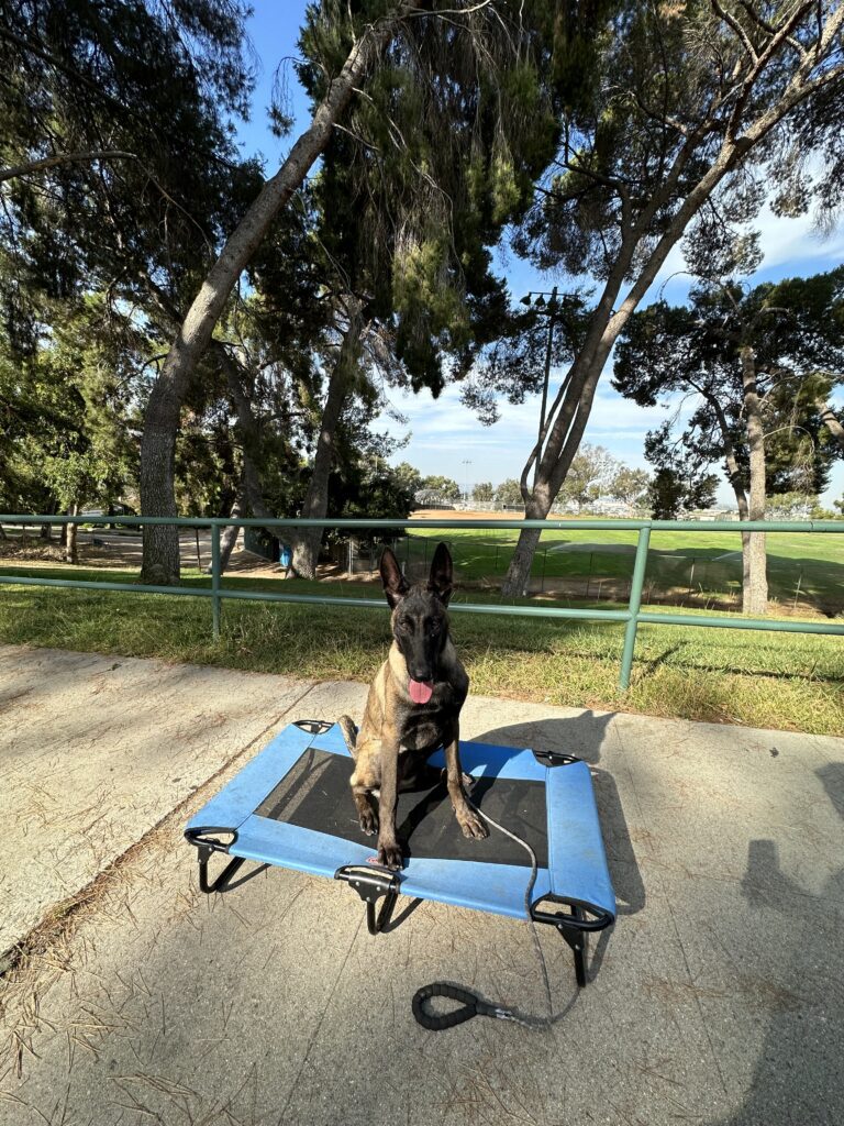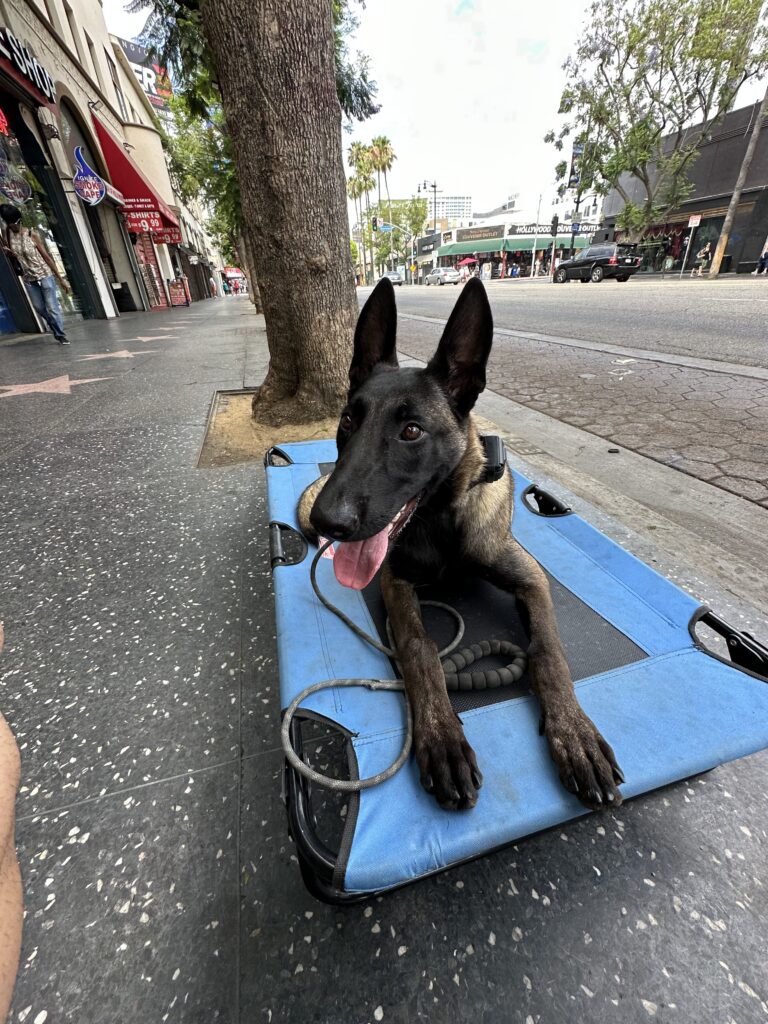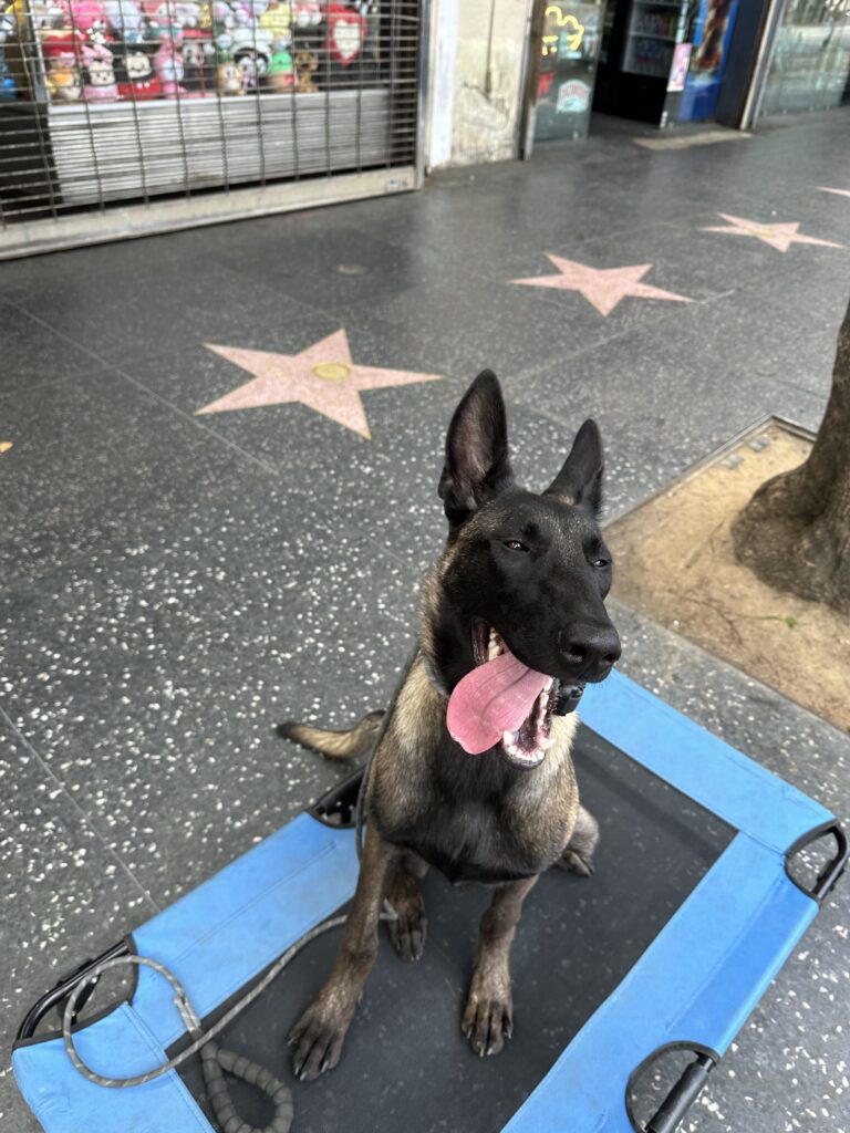 Training Summary: “WERE GOING TO HOLLYWOOD!” Today was a fun outing where we headed to the walk of fame on Hollywood Blvd! At first walking through the crowds of people – she was a bit timid and skeptical of the environment. Although she did not bark nor was she lunging which is great improvement. Leadership is important especially in environments like these. She’s very smart and sometimes certain noises may trigger her. Some examples may be people yelling and very loud noises. She loves the place cot and is very familiar with it. It’s important to make her doggy beds significant like this place cot. I can take this cot anywhere and she will be confident and calm. The place cot means the same anywhere we go. Great training session for her first visit here!