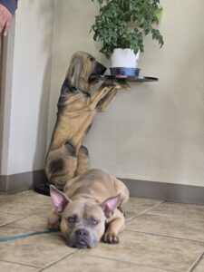TRAINING HIGHLIGHTS: Today’s training went well! Cornbread did great with the *duration sit* command and is making progress. He’s still struggling a bit with the *down* command, but he’s getting there. We rewarded him with his favorite treat, fish skin, but since it’s softening his stool, we’ll cut back on it.