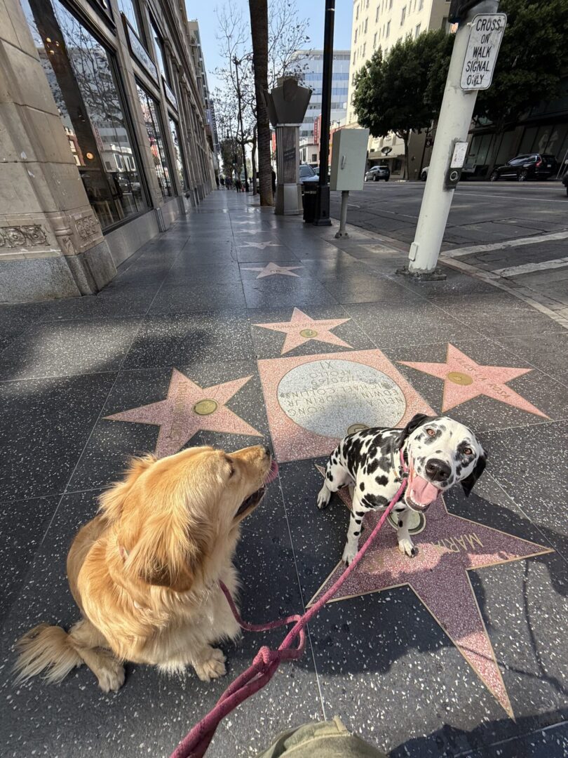 Today we took our first trip to Hollywood, and it was definitely a whirlwind of distractions. The noise, the crowds, and the energy can be overwhelming—especially for dogs who tend to be a bit flighty in new environments. But bringing Dorothy and Katie together proved to be the perfect match; their energy balanced each other out, and they really complemented one another’s behavior. Once they had a chance to settle in and get acclimated, both dogs displayed a surprising level of confidence. They navigated the busy streets with focus and calm, and we were even able to practice some off-leash work amidst all the chaos. Huge progress for both pups—great job, Dorothy and Katie!
