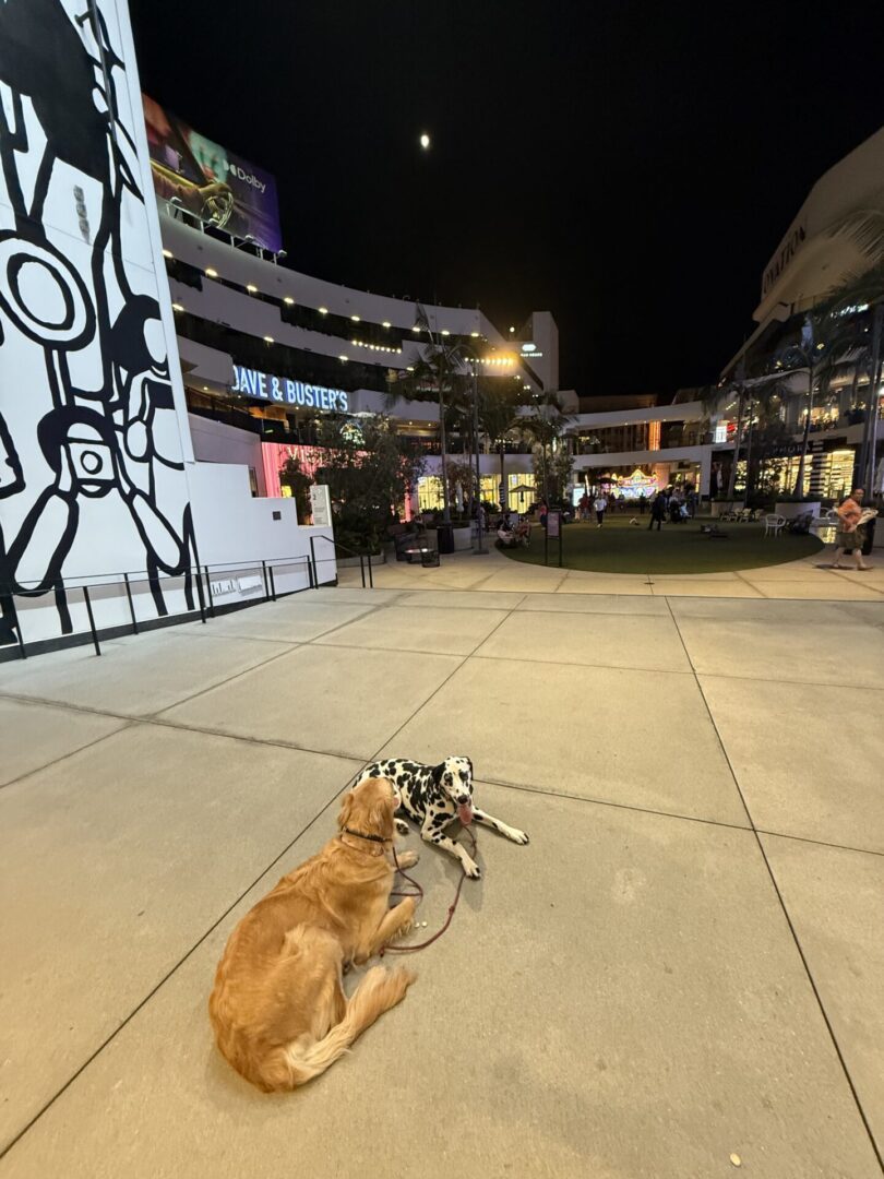 This evening, we took Katie and Dorothy out to train in front of the iconic Chinese Theatre, immersing them in one of the most distraction-heavy environments you can imagine. From flashing lights and loud street performers to heavy foot traffic and sudden noises, they were exposed to it all—and they absolutely crushed it. Training during the cooler evening hours not only helped them stay comfortable in the summer heat, but also allowed us to challenge their focus and obedience in a high-stimulation setting. Both girls are showing impressive self-control, confidence, and reliability despite the chaos around them.