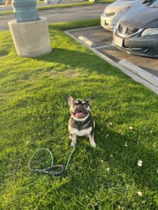 Training highlights : Ferdi looking handsome whike we train and he completes his duration sit and down. He is finally learning how to settle down in public & understand that once he focuses on the commands, the world isn’t so scary and he doesn’t have to constantly be on guard. While his accidents have not improved when in the crate, he is doing well with everything else.