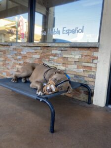Frank is making steady progress so far in out training journey! He is getting better at walking in the heel position and completing all of commands. Frank has been such an amazing dog so far, but as much as I would love to say he’s perfect, the only thing he struggles with is the timing he does things and getting up out of the kennel. I am continuing to work with Frank every day in order to build his confidence in public.