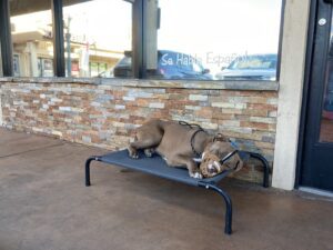 Today Frank seems to be feeling a lot better! He is moving around much faster and is no longer showing signs of being in pain. Today Frank practiced his basic commands out in front of the grooming salon, where he shown progress in his training and energy. Frank still doesn’t have much of an appetite, but we are still trying various methods in order to make him eat more. Stay tuned to watch Frank pull through in order to complete his two week board and train!