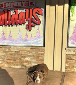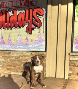 Frank is progressing daily throughout his training journey, and his confidence is rising slowly but surely. Today we worked on our basic commands in front of the store and my home. Frank is still struggling with fearfulness in public, but is beginning to trust his trainer and work around distractions a lot better.
