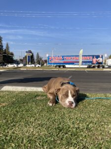 Frank is making steady progress so far in out training journey! He is getting better at walking in the heel position and completing all of commands. Frank has been such an amazing dog so far, but as much as I would love to say he’s perfect, the only thing he struggles with is the timing he does things and getting up out of the kennel. I am continuing to work with Frank every day in order to build his confidence in public.