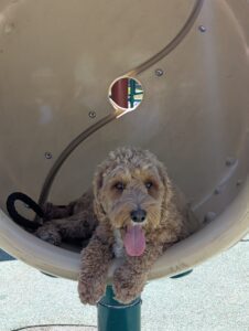 TRAINING HIGHLIGHTS: Today’s field trip to the park was a HUGE success! Frankie did an AMAZING job holding multiple commands amidst all the exciting distractions! Frankie’s love for field trips to the park and playtime is evident – he thrives in new environments and makes training fun.