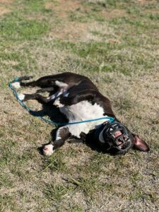 Today George had an amazing day of training! He is getting very good at completing most of his basic obedience commands, such as come, sit, down, and heel. Although he is doing an awesome job mastering his commands, George has showcased some signs of dog aggression. Earlier today he tried to attack one of our personal puppies. Luckily we have a muzzle on George, so nobody was hurt at all and we were able to successfully finish our training session on a positive note.