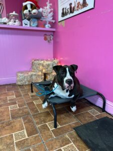 For todays training we focused mainly on keeping George the place cot while in the grooming salon while various distractions came by. George did an amazing job by not responding towards any triggers while laying down on the place cot. We are very proud of this progress and excited to see just how much George can learn by the end of our board and train program!