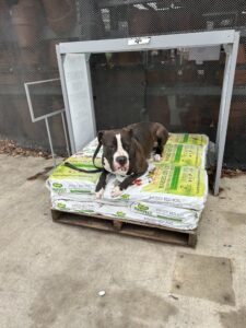 Today George demonstrated his best behavior in Home Depot! George is still wearing the muzzle due to his history, but is doing an amazing job learning how to ignore people, noises, and build his confidence. Over all George has had an amazing time with us over his two week board and train program, he has came a very long way from when he first started and conquered every obstacle thrown at him. We are extremely proud that George has successfully completed his rehabilitation program, now has a very bright future ahead of him once he goes back home.