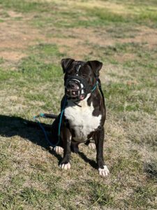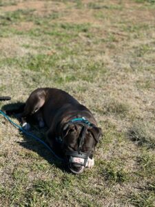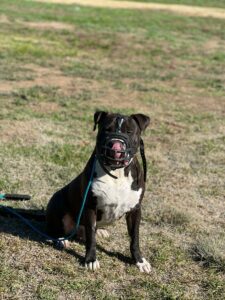 Today George had an amazing day of training! He is getting very good at completing most of his basic obedience commands, such as come, sit, down, and heel. Although he is doing an awesome job mastering his commands, George has showcased some signs of dog aggression. Earlier today he tried to attack one of our personal puppies. Luckily we have a muzzle on George, so nobody was hurt at all and we were able to successfully finish our training session on a positive note.