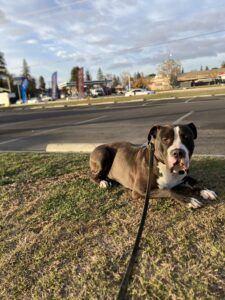 Today we kept it simple with George’s training and focused on completing our basic commands around the nearby shopping center. George is building a lot of confidence and doesn’t try to lunge or bark at strangers anymore. Although George is doing an awesome job there is a couple things he struggles with such as shyness around strangers, and lunging towards smaller dogs. Please stay tuned to our website for updates on George’s progression and to watch him learn how to work past all kinds of distractions.