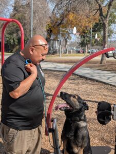 TRAINING HIGHLIGHTS: “Another successful field trip to the park! Hades did amazing holding multiple commands amidst distractions. Proud of his progress!”