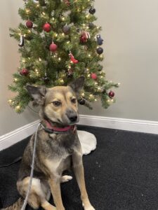 Training highlights: Check out sweet girl hanging out by the christmas tree. She has been so much better at focusing on commands and ignoring dogs in public and in the neighborhood. Hershey has been great with her duration commands, heel and being respectful around new people. She is getting better at understanding the ecollar daily and we will be increasing distraction levels starting tomorrow ! Good work so far hershey!