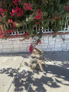 Training highlights: Hershey worked on all commands today and is doing great with understanding the ecollar stimulation. She can still get hyper focused on dogs who may look threatening to her and she will choose to protect herself with growling with teeth showing and lunging at them even if they are at a distance. She’s eating great playing and going potty normally