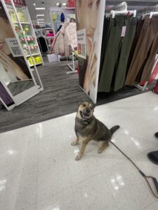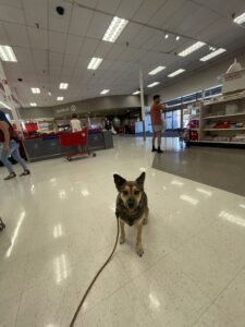 Training highlights: Hershey took a trip to target where we completed all commands around strangers, both human and canine. She loved sight seeing and getting to work on her skills in a new busy environment which gave her many new challenges