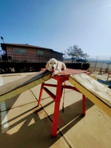 TRAINING HIGHLIGHTS: Today’s training was a success! We introduced the “place” command to Indi, and she picked it up in no time! This clever girl is learning to settle and relax in her designated spot, which will help with calmness, focus, and impulse control.