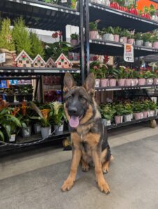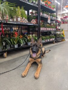 TRAINING HIGHLIGHTS: Today’s training we went on another field trip to Home Depot, where Kodak did a great job holding duration commands despite the busy environment and added distractions. He stayed focused, listened well, and continued to show improvement with his impulse control and confidence in public spaces. Overall, this was a very successful outing and a great step forward in his training progress.