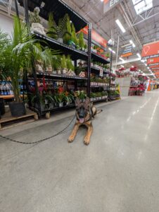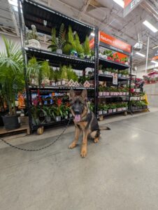 TRAINING HIGHLIGHTS: Today’s training with Kodak included a field trip to Home Depot, where he did an excellent job holding multiple commands despite the busy environment and added distractions. He stayed focused and made great progress in a real-world setting.