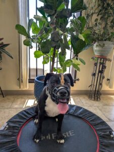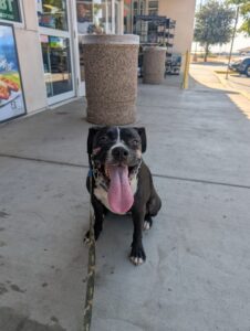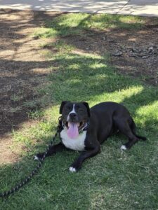 Luna, our sweet Pitbull–Staffy Terrier mix, has joined our 3-week rehabilitational Board & Train program. Her biggest challenge? She feels the need to chase just about anything that moves — people, dogs, birds, lizards, bicycles, even hikers.