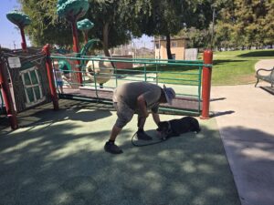 TRAINING HIGHLIGHTS: “Luna held her own in the park today—duration commands locked in, even with distractions dancing all around her. Calm in the chaos, focus in the freedom. Proud of this girl’s poise and progress!”