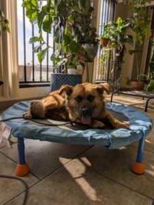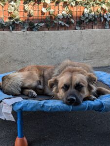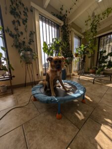 Milo came to us with a challenging past. Found on the street, we suspect he may have experienced abuse or neglect before being rescued. He has specific fears, including cars, loud noises, and the water hose. He also struggles with behaviors such as stealing shoes, not responding to his name, and a lack of recall.
