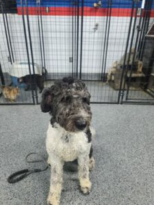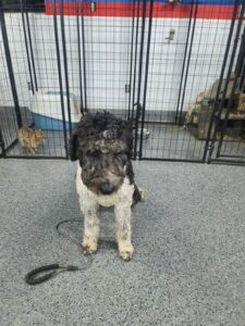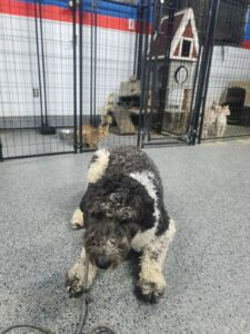 Oreo, a lively Doodle breed, is joining our boarding train rehabilitation program to address several behavioral challenges. His key issues include persistent pulling on the leash, excessive barking, and a particularly troubling tendency to chase after children on bikes and skateboards. Notably, Oreo displays a distinct dislike for skateboards, which seems to trigger his chasing behavior. Our program aims to work closely with Oreo to modify these behaviors, ensuring he becomes a well-adjusted and sociable member of the community.