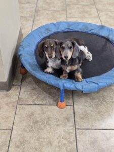 Benito and Panchito, two energetic Mini Dachshund brothers, joined us today for our 2-Week Board & Train Program. They are here to focus on leash manners, basic obedience, confidence building, and potty training. Training them together allows us to work through their individual needs while also helping them learn how to stay focused around each other.