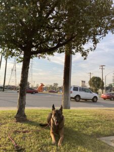 Poco had an amazing first day! She is a very fast learner and has already adjusted to using the E collar. Although poco is a very intelligent dog, she does struggle with fearfulness around some strangers and loud noises, which is common in dogs like her. Over this next week with Poco, we plan to work hard on teaching her how to extend the sit and down command. Poco is going to have a fun week with us learning how to build her confidence in public and around lots of distractions.