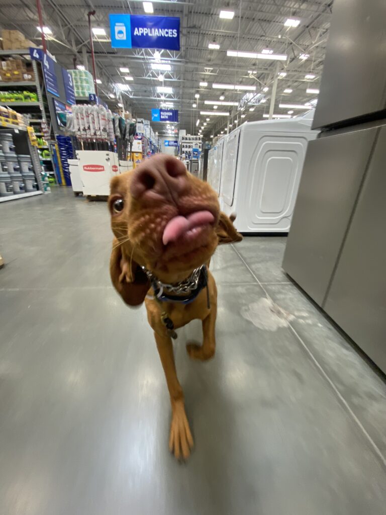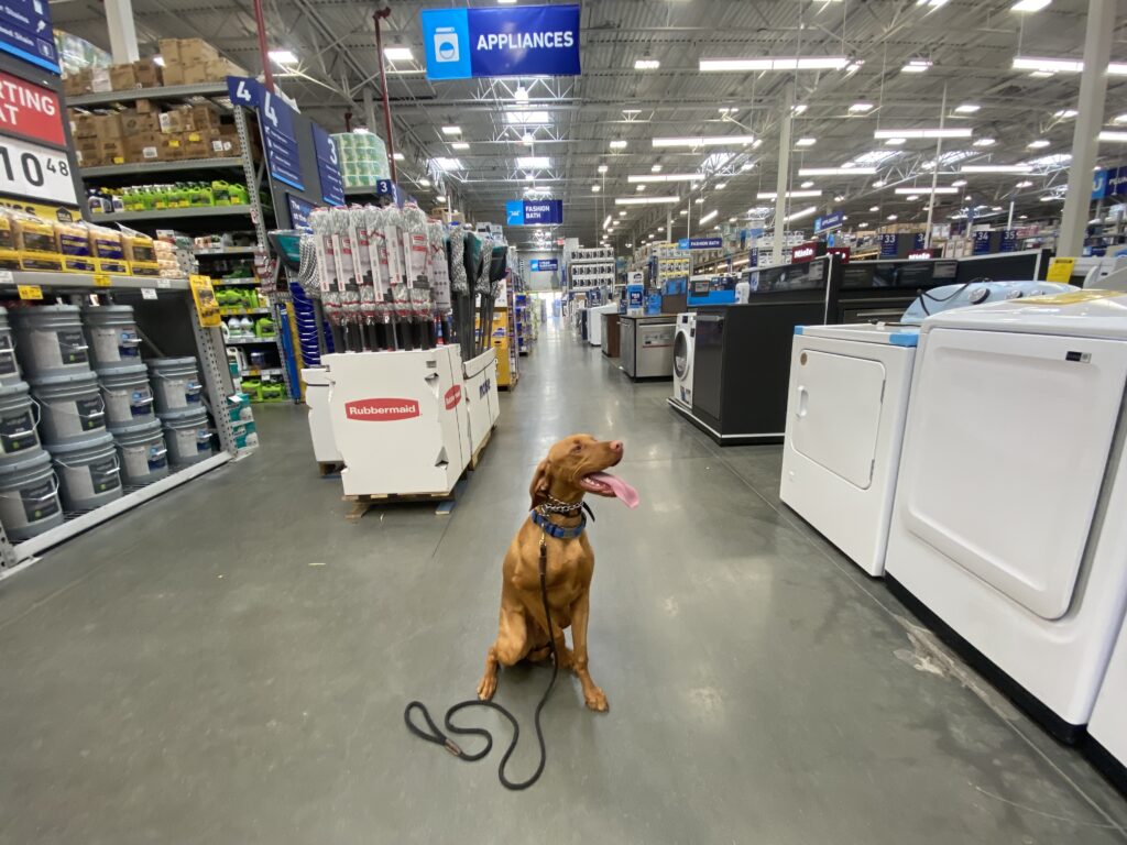 Training Summary: It was a great training session today at Lowe’s. Rusty was able to perform much better in this type of environment. He was around lots of people and lots of new noises. Shopping carts didn’t faze him at all as he was more focused on the training! He was a bit nervous performing the down command around people, he would down and break command quickly. We will continue to extend all his commands! He loves his cow ears and finishes his meals.