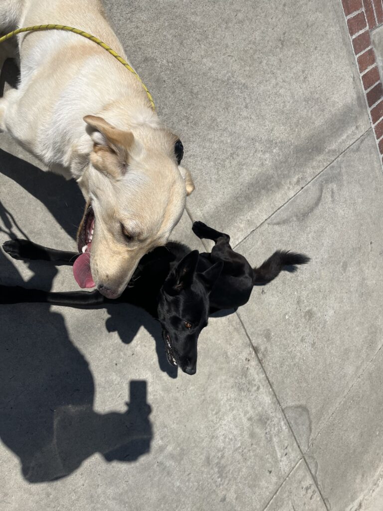Training Summary: Scooby was able to meet with a new friend today, Sammie the German Shepherd! The two have really great energy around each other. They are able to share the same spaces and enjoy each other’s company. It’s important to only socialize dogs that you feel are “okay” for Scooby.