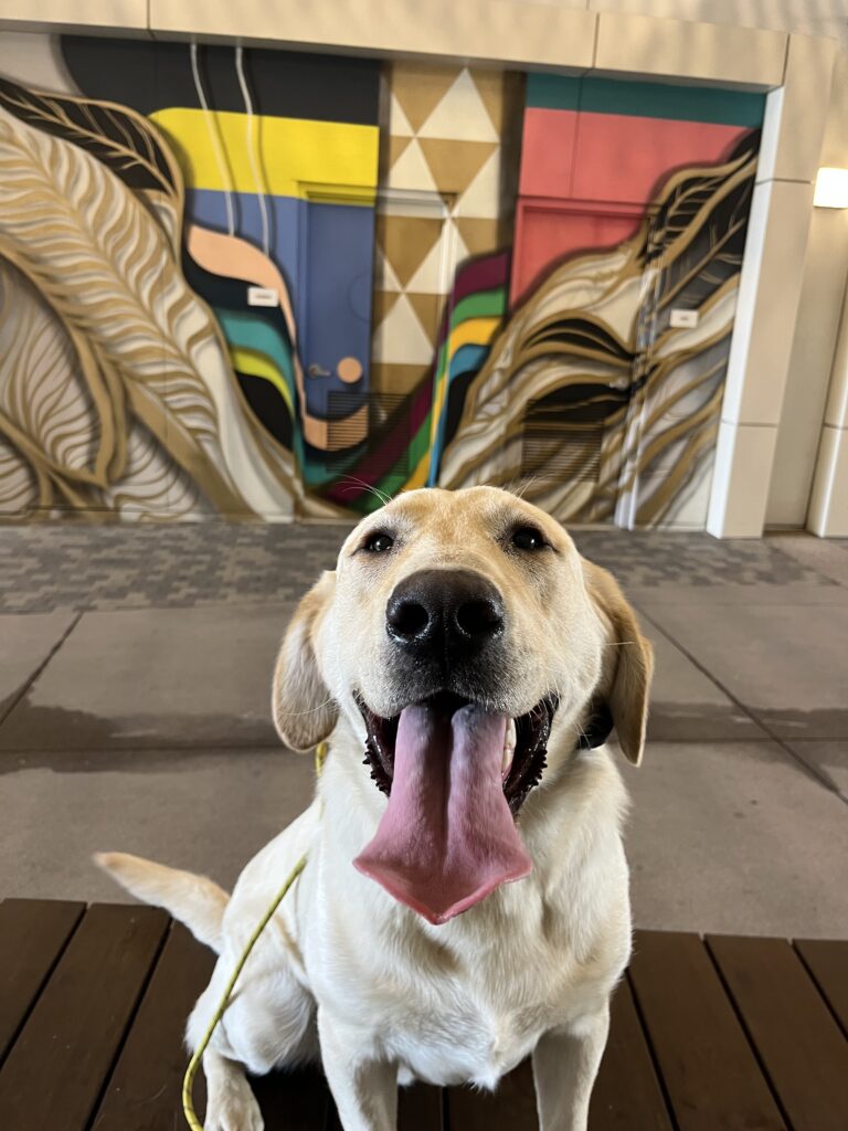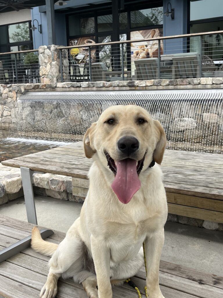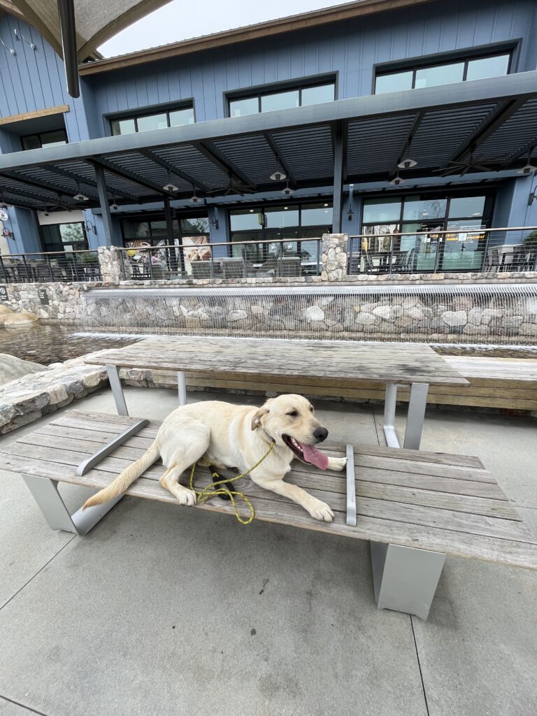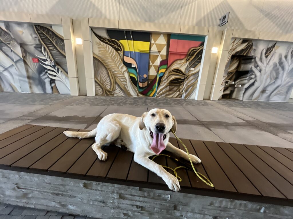 Training Summary: We continue to expose Scooby to new environments daily! He loves to be around people! I put him on command in high distracted areas like this so he can focus on his task at hand, rather than the billions of distractions around him. If on command for a while, he will challenge you by breaking command…stay calm and follow through with the same command.