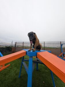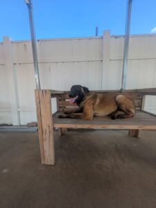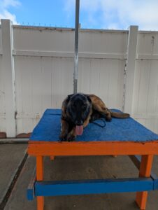TRAINING HIGHLIGHTS: After a fun day of training, Starfire and Fredrick got to relax on the place command. The place command teaches them to go to a designated spot, settle their bodies, and remain calmly in position until released. This helps build impulse control, confidence, and the ability to relax, even after an active training session. They did a great job unwinding and holding the command calmly.