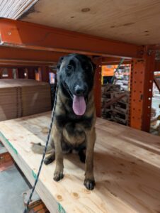TRAINING HIGHLIGHTS: Today’s training we went on a field trip to Home Depot, and Starfire did great holding multiple commands amidst distractions. She stayed focused and composed in the busy environment, showing solid progress and confidence.