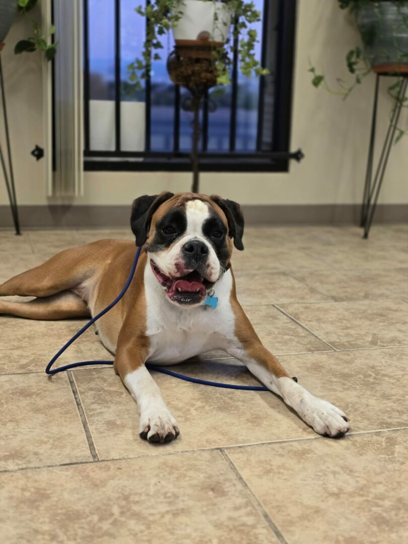 We are excited to introduce Stella, a spirited Boxer who has recently joined us for our 2-week Rehabilitation and Board & Train program. Stella is here to work on her dog aggression issues. She can be a bit overwhelming, especially around humans and overly excited dogs. Stella’s reactions can be quite intense, but we’re committed to helping her overcome these challenges.