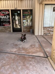 Tito is doing great practicing his commands in different places. He's becoming a pro at following cues no matter where he is!