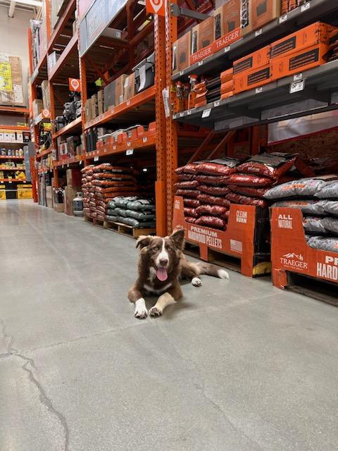 Tito did great on his second Home Depot trip, holding commands longer and staying cool even amidst the hustle and bustle of the store. Impressive progress since last time, reflecting his dedicated training.