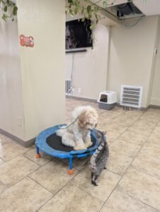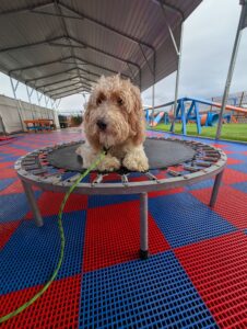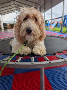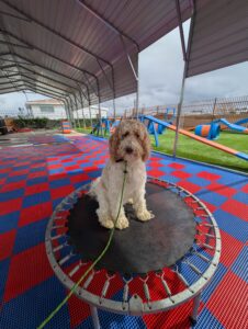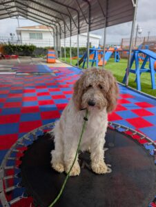 1-Year-Old Poodle Mix | 3-Week Board & Train Rehabilitation. Ursula just joined our 3-Week Board & Train Rehabilitation Program to work on fear-based behaviors and confidence building. She is very fearful of people and handling. Her owner’s goals are to safely pet her, put a leash on, have her come when called, and eventually take her to the groomer without stress or fear. Ursula is not aggressive — she is fearful, and our focus is helping her feel safe, understood, and confident through structure, clear communication, and trust-based training. We’re excited to help Ursula build confidence and learn that the world doesn’t have to feel so scary 💙