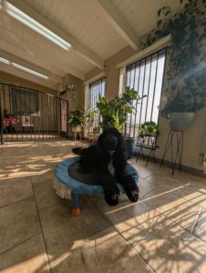 A big focus for Wonka is becoming a calm and trustworthy companion indoors, especially when left alone. His training includes teaching him to respect household boundaries—no jumping on beds or chewing on furniture.