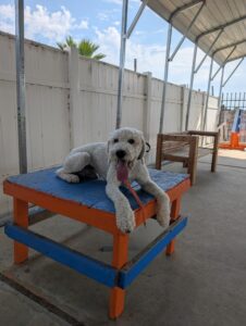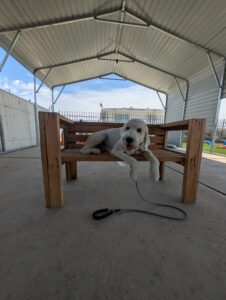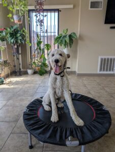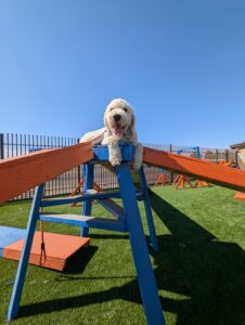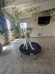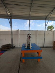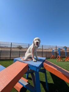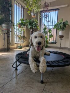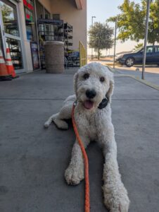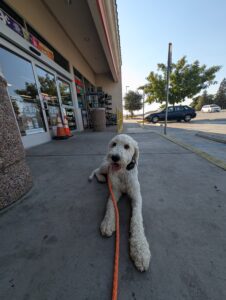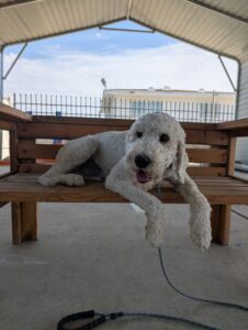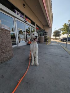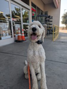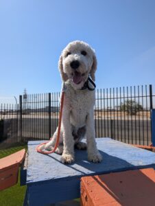 Yoshi is a fun-loving Standard Poodle who has joined our 2-week Board & Train Program. He loves to jump on people and needs to learn boundaries and limitations at home and out on the road.